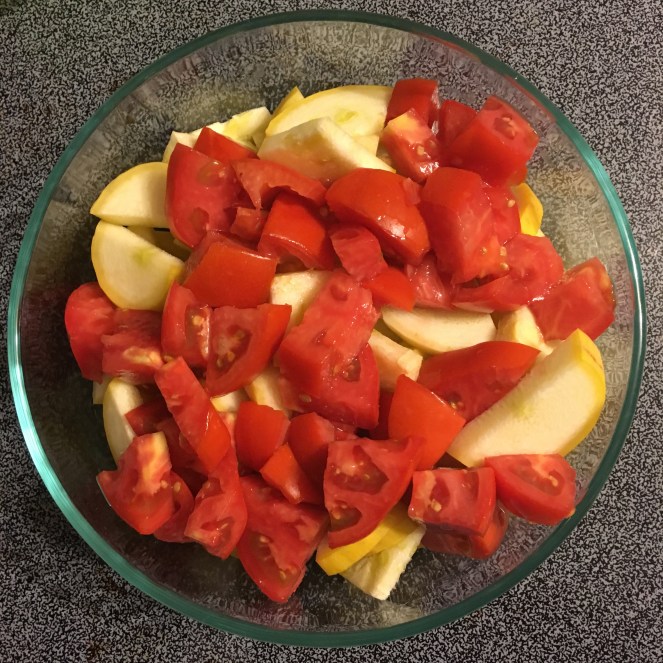 Lately, our tomato plants have are starting to produce quality fruit! We have had issues with “blossom rot” for the past couple years and the first round of tomatoes had it again this year…so I wasn’t anticipating a good outcome. Also, the bugs have been getting to the fruit before they are ready to be picked – So I have started picking early and letting them ripen on the counter đŸ™‚