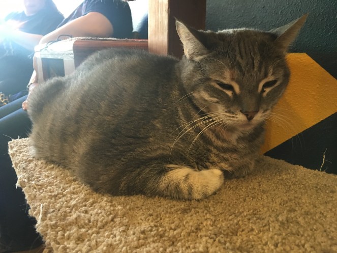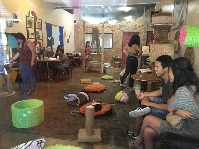 We sat outside for a couple minutes before there was room for us to meet and play with the cats…