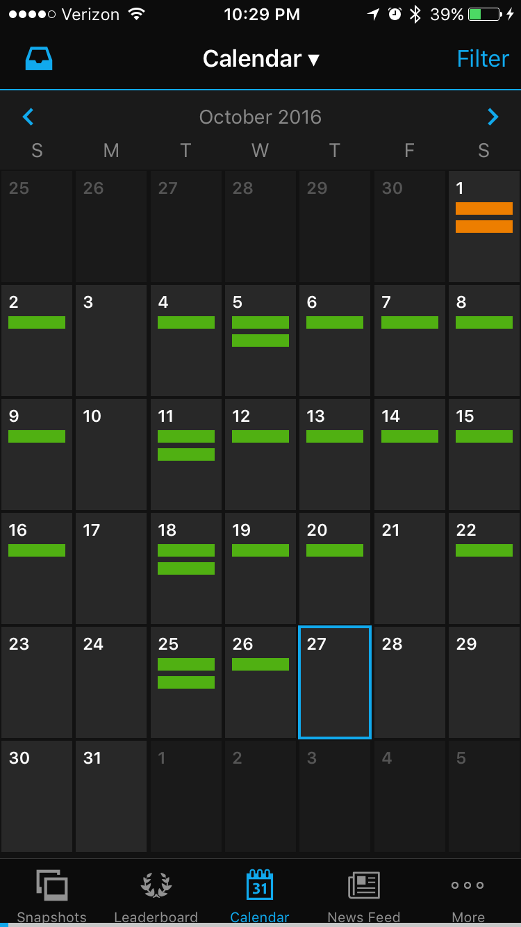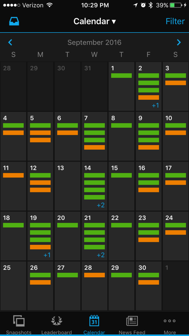 I feel very accomplished when my days have both an orange and green bar throughout the month… (Garmin speak…)