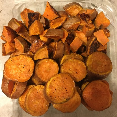 Before I really got into the apples, I had already slices and chopped some sweet potatoes and had them roasting in the oven 🙂 Yum!! This way, they were cooling while I slices apples and would be ready to be put away once I was finished!