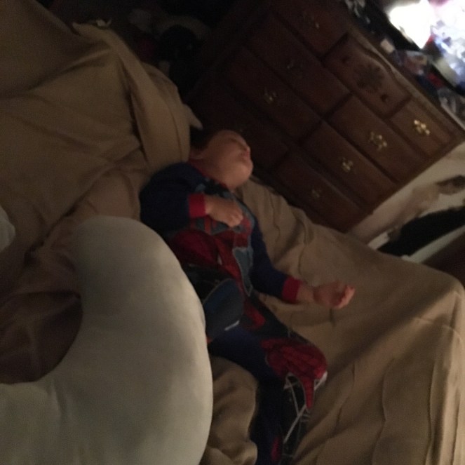 The hubs isn’t feeling well – the doc says he has bronchitis. He headed to bed once he got home from work and I brought him some soup. Little man is t familiar with us just hanging out in bed…so he was up the stairs, into our bed, off the bed, down the stairs, and repeat… Once I was finally ready to settle in for the night, he was the worst wiggle worm!!