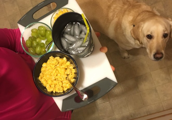 The hubs hasn’t been feeling well and I wasn’t sure what he would be up to for dinner. He decided on Mac and cheese with grapes…simple enough! Pai sure wanted to eat it 🙂