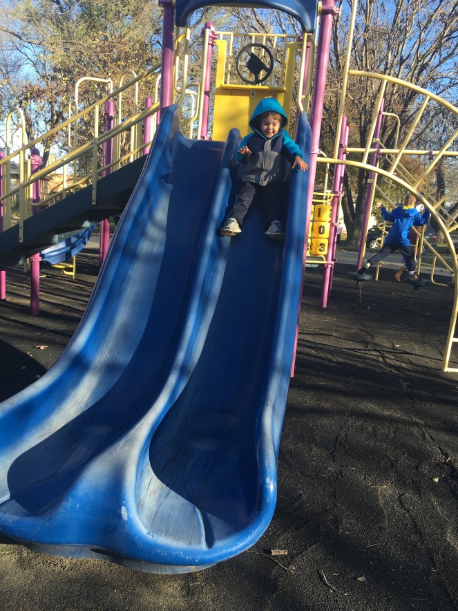 Little man loves going to the playground…and he had a blast running around with all the kids 🙂