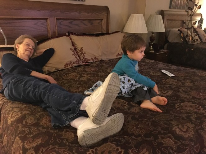 Movie watching with Great Nana Rosie