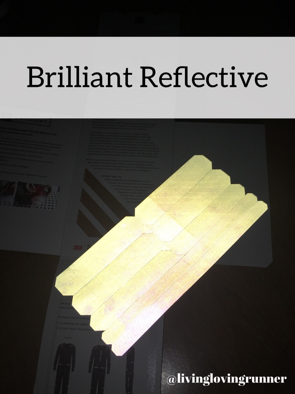 As a BibRave Pro, I was sent Brilliant Reflective Iron On and Stick On strips. Both strips work in the same way, and can be applied to different types of materials.