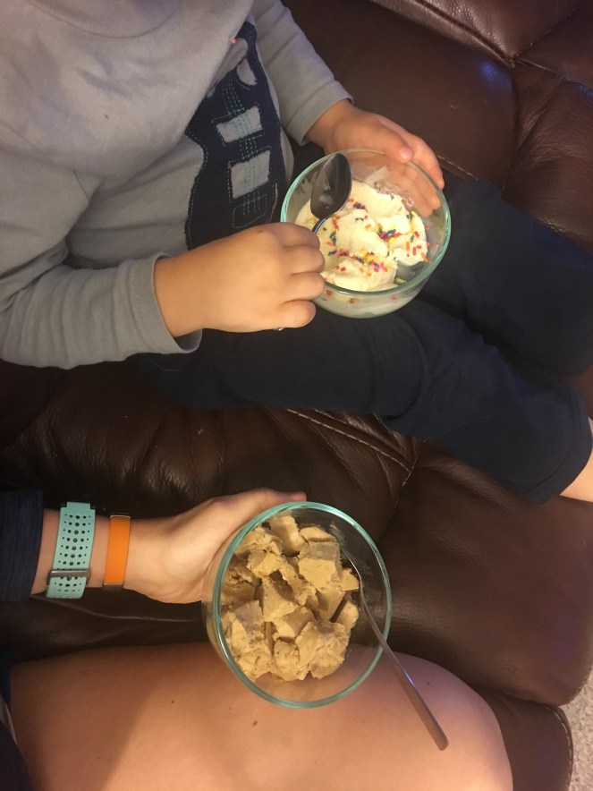 We settled into a movie and since we bought some ice cream, little man had some while I indulged on some homemade banana ice cream 🙂 Yum!