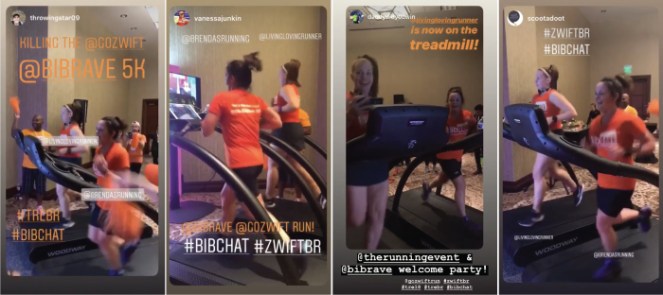 During the pre-TRE experience, I was a part of the BibRave Pro Zwift run at the Welcome Party. We all used previously set up avatars, but we still had the ability to run with other people from around the world! One of my Pro pals was running around the same time as I was and I had fun seeing her catch up to me and I was able to cheer her on with prompts on my screen!