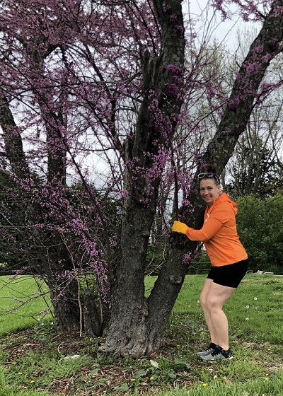 Overall, I had fun plogging and tree hugging! While I wish we were able to clean up more neighborhood streets before Earth Day, we will continue to keep gloves and bags in the stroller just in case we see the need! Did you hug a tree today?